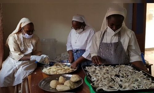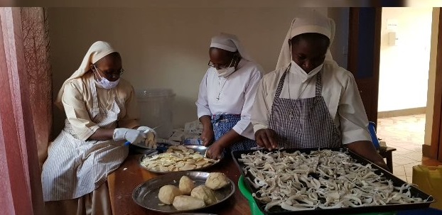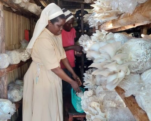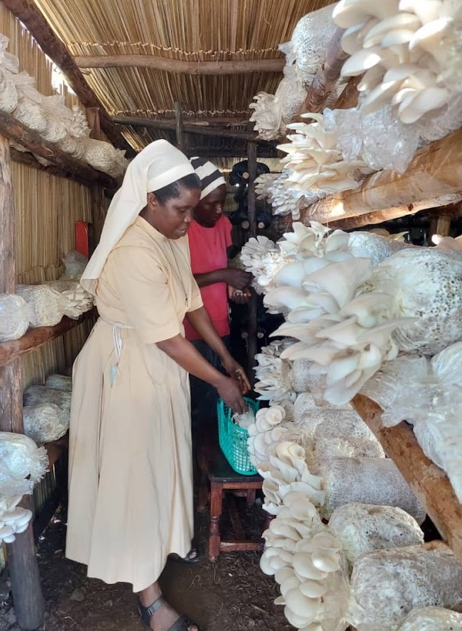 Sr. Goretti teaching the Postulants and Candidates how make mushroom gardens